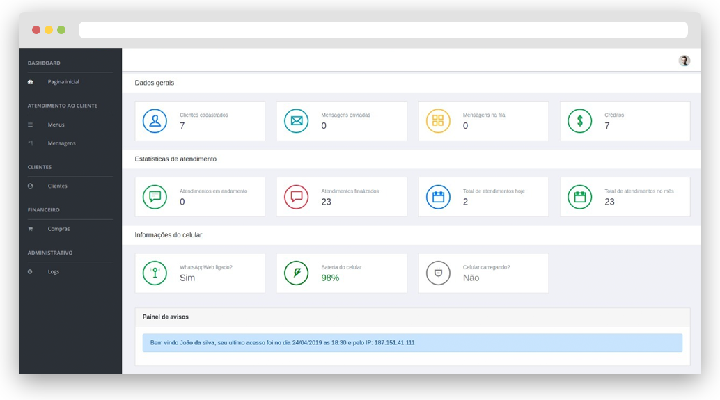 No painel do seu sistema você irá ter estatísticas como: Quantidade de clientes atendidos diariamente, mensalmente, quais foram os menus mais utilizados e outros.